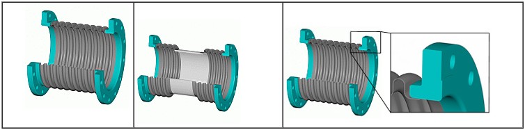 軸向(xiàng)內壓式波紋管膨脹節的平板法蘭連接:為了螺栓連接到管道係統中,任何一種類型(xíng)的法(fǎ)蘭都可以應用在金屬(shǔ)波紋管膨脹節上。鍛鋼和平板法蘭可以匹配2.5Mpa到(dào)5.0Mpa的壓力(lì)和溫(wēn)度等級(jí),通徑標準可從15mm到5000mm。特(tè)殊(shū)法蘭,如活套法蘭或者(zhě)角向法蘭尺寸可(kě)從(cóng)300mm到1800mm。任何尺寸的法蘭均可定製。